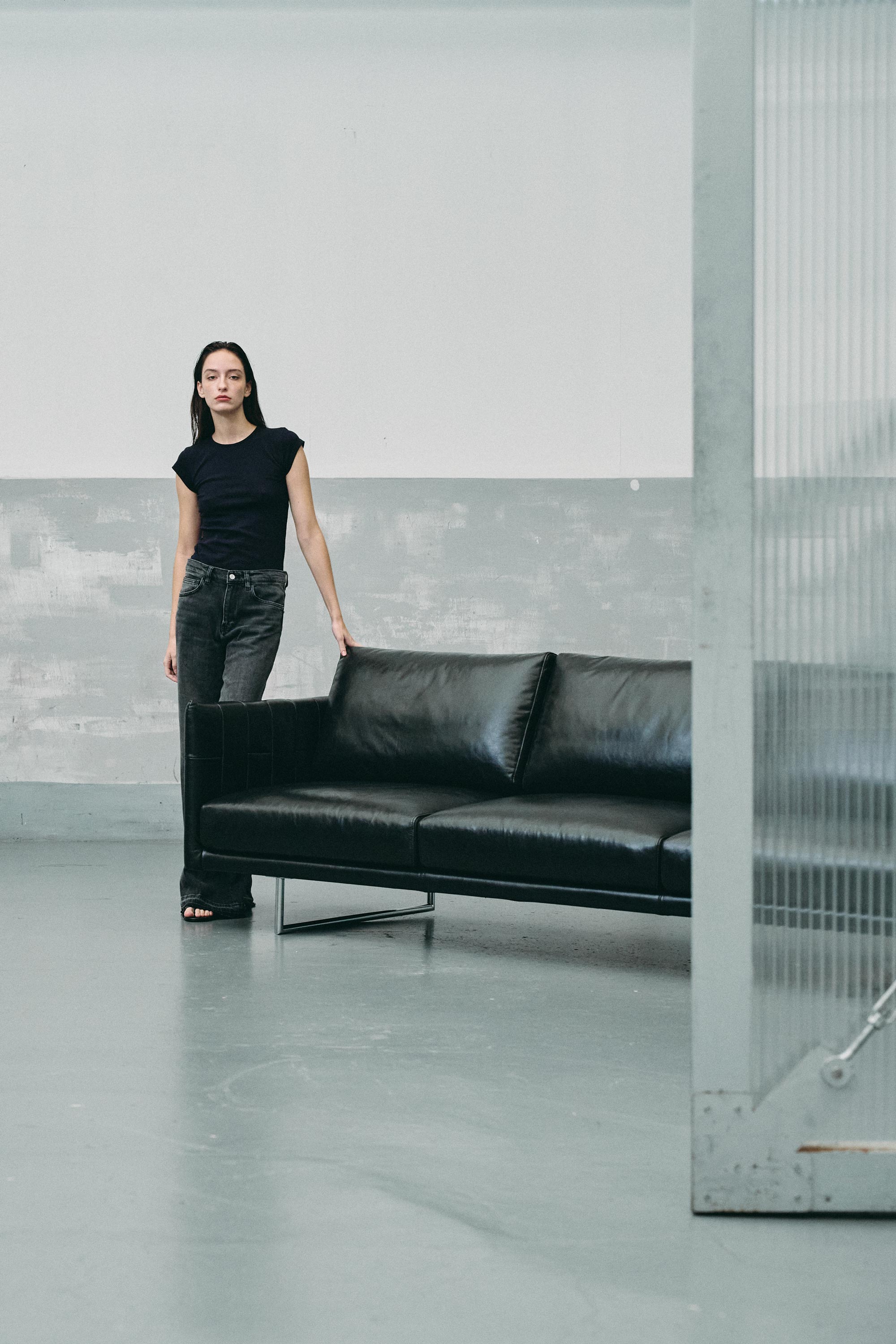 스테인레스의 긴장감과 가죽의 따뜻한 질감이 어우러져, 현대적인 공간에 균형 잡힌 조화를 만들어냅니다.
